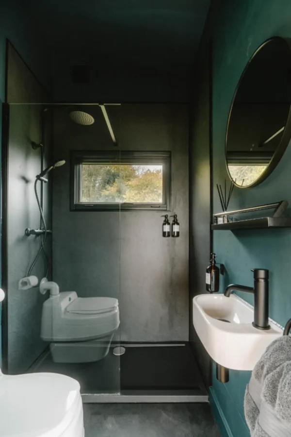 Having a waterless toilet means the decision about locating a cabin can be led by aesthetics rather than how close it is to a sewer connection (and the costs of linking to it, even if it were possible).