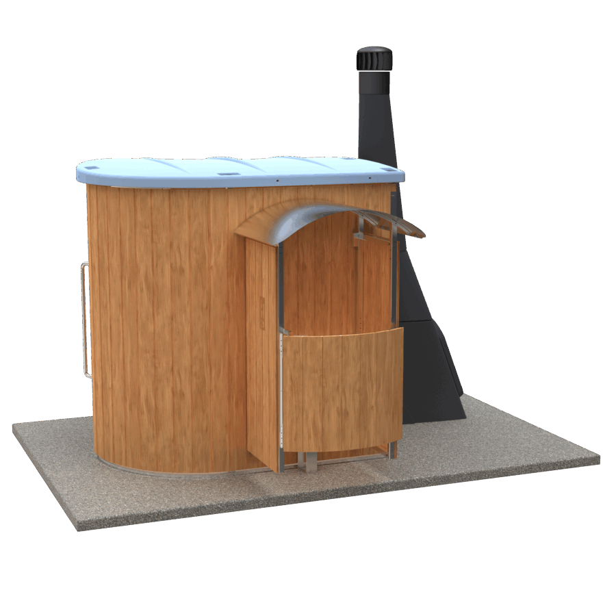 - Door: hinged wooden door on a steel frame, with automatic and adjustable closing mechanism.