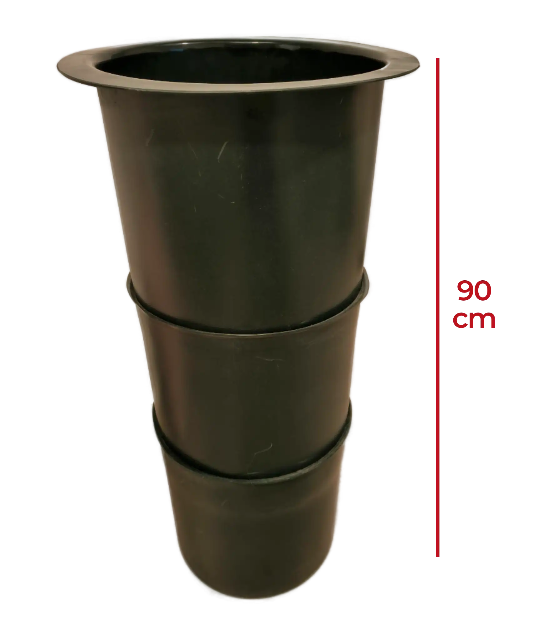 The chute is made by plastic welding sections together to produce a piece that includes a flange and has an overall length of 90cm. For longer lengths, please contact us.